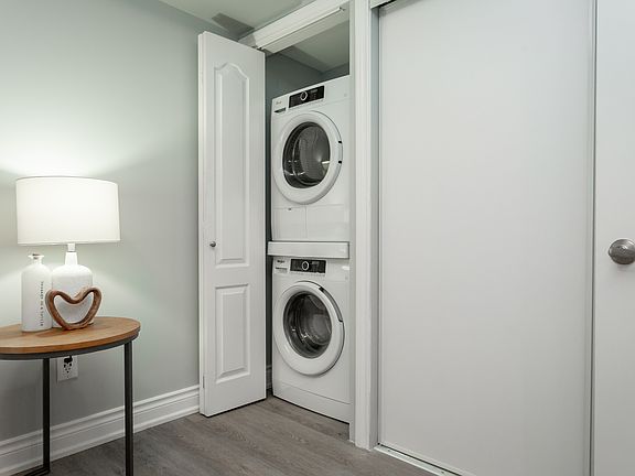 Sleek stainless-steel appliancesElegant quartz countertopsIn-suite laundryAir conditionerQuartz countertopsVinyl plank floorsSelf-controlled heating and ac