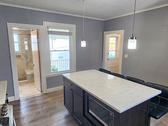 Modern eat-in kitchenShared backyardLarge primary bedroomPrivate outdoor balconyStainless steel appliancesLarge islandRenovated bathroom