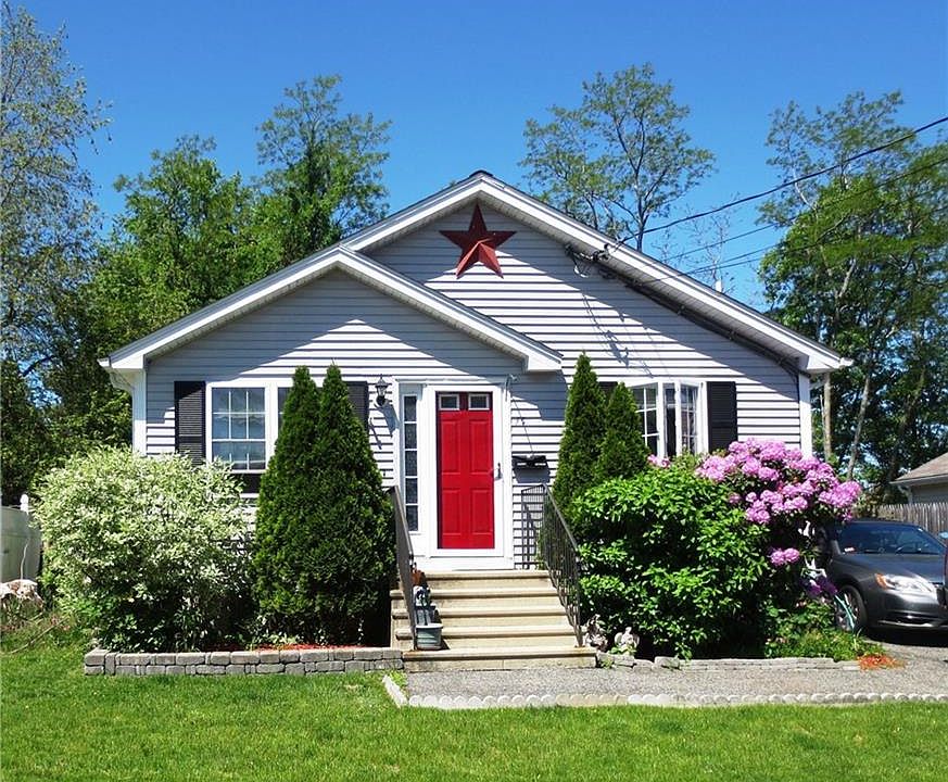 SUPER WELL MAINTAINED 1100 SQ FT/3 bed Ranch featuring vinyl flooring throughout the house, oversized living room with vaulted ceiling, wired for sound and ceiling fan, comfortable dining area and large updated kitchen (also with vaulted ceiling) with stylish backsplash and updated appliances including gas range. Master bedroom is oversized, ceiling fan, oversized closet and two additional bedrooms also featuring vinyl flooring and ceiling fans. Full bathroom with tiled floor, oversized vanity and one piece fiberglass bath unit with tiled border. Basement has high ceilings with shelving for storage, steel beam support across front of house, walk up bulkhead steps to rear yard, new gas forced air heating/cooling system, new gas hot water tank, Carico UltraTech whole house water filtration system, washer/dryer (dual connection) hook ups, updated 100amp electric panel, workout area and a layout that can easily be finished for MORE living area if needed. FIOS or Cox Cable available. Home faces East and includes new VIVINT solar panel system (buyer to assume power purchase agreement - see details) offsets all electric costs in this home. Nice rear yard. Two car tandem parking. This home is a TOTAL WINNER!