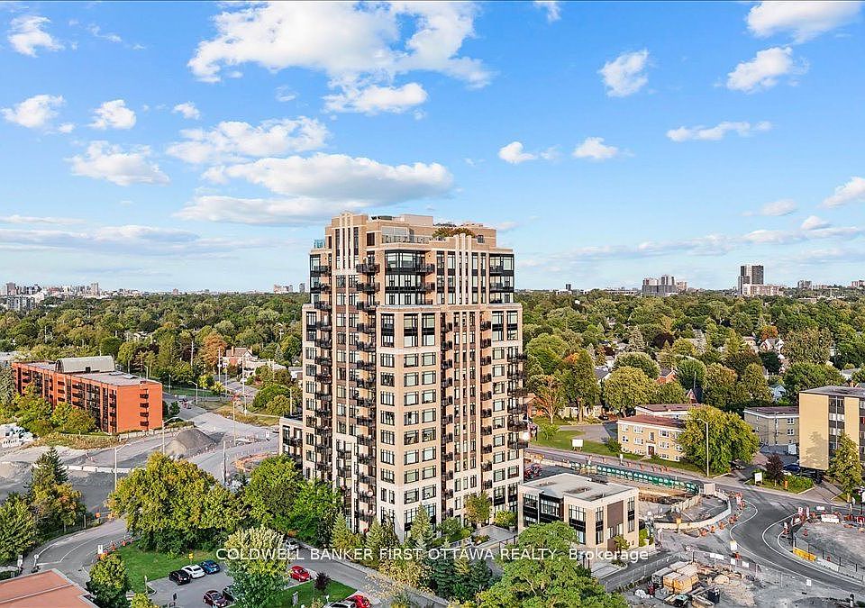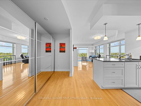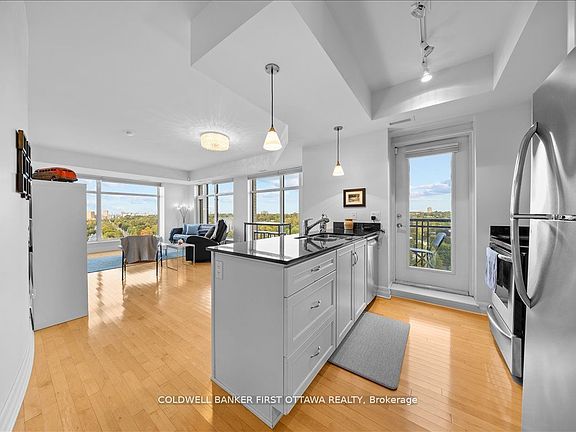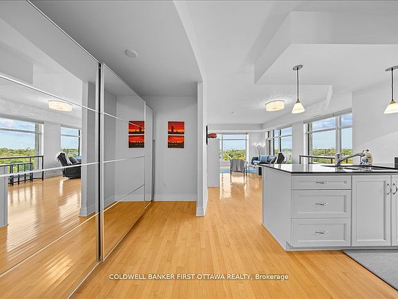 Discover a sanctuary of sophistication high above vibrant Westboro. This exquisite approximately 1,200 sq ft + Balcony residence offers a privileged perspective, featuring breathtaking, unobstructed panoramas of the Ottawa River, Gatineau Hills, and the downtown Ottawa skyline.Designed for both gracious living and entertaining, the open-concept layout is bathed in natural light from two exposures and hardwood throughout. The well-appointed kitchen boasts granite countertops and premium stainless steel appliances, while the expansive balcony provides a perfect setting for al fresco dining against a stunning backdrop.The generous master suite is a true retreat, complete with a walk-in closet, a spacious ensuite bathroom, and captivating river views, including summer fireworks displays. A second large bedroom, an additional den ideal for a home office, and a second full ample space for all needs.This exceptional residence includes in-suite laundry, an underground parking space, and a storage locker. Residents enjoy exclusive access to premier building amenities, including a state-of-the-art fitness center, a versatile party room, and incredible rooftop terraces. Walking distance to future LRT, walking and bike trails, top rated schools, Westboro village, Carlingwood mall and more! Location, Lifestyle, Luxury all here at 75 Cleary ave suite 1202! All utilities included condo fees except hydro.