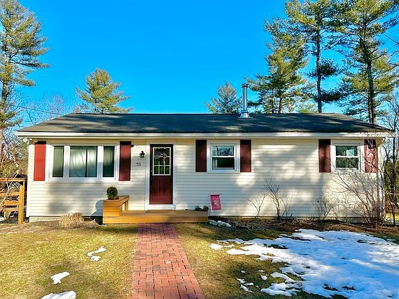 RARE opportunity to OWN this MOVE-IN READY ranch in a quintessential New England setting! 75 Coburn is set on a gorgeous wooded road with beautiful scenery and offers 2 nicely sized bedrooms, a sunlit living room, full bathroom with TILED SHOWER & an updated bright kitchen with GRANITE COUNTERTOPS, recent STAINLESS STEAL appliances & a separate eating area. Mostly finished basement with laundry offers a sitting/game area, a second family room perfect for entertaining, and a workshop area w/ plenty of additional storage. Third bedroom (in public record) has been opened up for an IN HOME OFFICE. PRIVATE DECK off the kitchen leads to your huge FENCED IN BACK YARD w/ outdoor shower. Wooded surrounding, large shed, & plenty of room for year-round activities. Lots of parking & recently improved driveway. Mini-split AC & pellet stove. Berlin offers excellent school systems, shopping & access to major highways 495 & 290. THANK YOU FOR YOUR INTEREST, SUNDAY'S OPEN HOUSE CANCELLED.