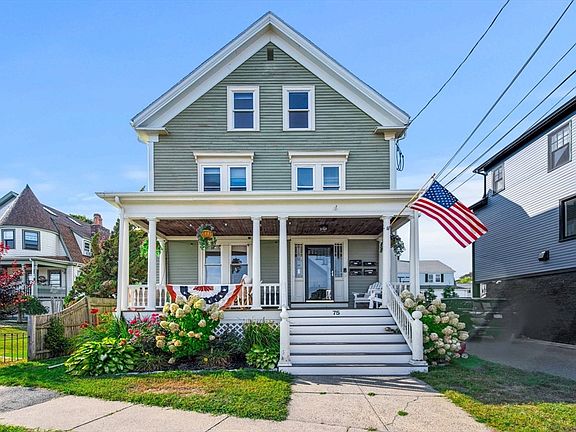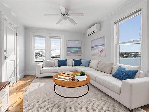 Water views from almost every room in this pretty second-floor three-bedroom condo at the Salem Willows overlooking Juniper Cove!  Sit on the front porch and enjoy the ocean breezes or pop across the street to the beach.  Open concept layout with a gorgeous updated kitchen, white cabinets and granite counters which flows into the large dining room and spacious living room for full enjoyment of the beautiful water views. Original wide pine floors, wide baseboards and trim throughout and built-in cabinetry bring the perfect balance of historic character with modern updates.  Updated bathroom with mosaic marble floor.  Lots of room and storage in the three large bedrooms and additional exclusive basement storage. Heating/cooling from energy-efficient mini-splits.  Access to shared fenced rear yard and front porch sitting area.  This unit has permission to add a rooftop ocean-view deck. Enjoy the perfect stay-cation living just in time for Spring at 75 Columbus!