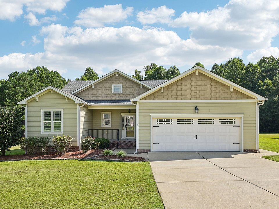 Welcome to this beautifully crafted custom ranch home nestled on a spacious 1.75-acre lot in a peaceful 15-lot community with NO HOA and NO City Taxes. This home offers the privacy and elbow room that's hard to find in most subdivisions, with homes thoughtfully spaced apart and a wooded backdrop for added seclusion. Inside, you'll find the quality you'd expect from a custom build, including hardwood floors, granite countertops, tile backsplash, custom cabinetry, and wood shelving in every closet—no wire racks here. The oversized garage includes a convenient side entry door, making access easy without raising the main garage door. One of the standout features is the enclosed 3-season sunroom with tile floors and vinyl windows that can be opened or closed, allowing you to enjoy the space comfortably all year long. The primary suite features a large walk-in closet with a full-sized mirror, providing both style and function. A wired shed/workshop offers additional storage or workspace; perfect for hobbies or projects. With its thoughtful layout, quality finishes, and unbeatable lot size, this home offers comfort, character, and convenience in a quiet, well-maintained neighborhood. Conveniently located only 5 miles to Flowers Plantation in Clayton.
