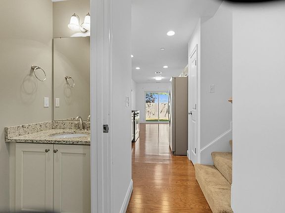 Private patioHardwood flooringStainless steel appliancesWalk-in closetRecessed lightingModern kitchenGranite countertops