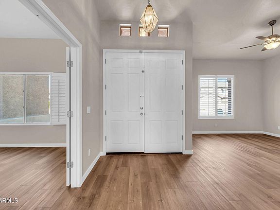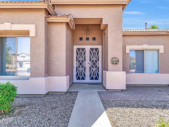 The flexible layout offers 3 bedrooms, including a large primary suite with a remodeled shower, walk-in closet, and generous space for relaxation. Enjoy outdoors with a sparkling play pool, covered patio, grassy backyard w/ mature citrus trees, and RV gate with expansive side yard. Front low-care Xeriscape landscaping. 3-car garage. Community parks pickle ball court, play areas, and basketball courts all just minutes from shopping, dining, and top conveniences.