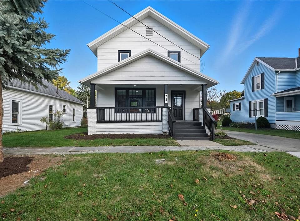 Welcome to 75 E Whitney Ave in Shelby Schools — where everything is brand new! This fully renovated 3 bed, 1 bath, 1,334 sq ft home has been completely transformed, offering peace of mind. Step inside to find new drywall & brand-new flooring tying the home together. The kitchen features new butcher block countertops, cabinetry, & stainless steel appliances, all installed in 2025. The bathroom has been fully remodeled with a new shower, vanity, toilet, & tile. Enjoy convenience & functionality with main floor laundry, spacious beds, & attic access. Every major system has been updated, including a new electrical panel & wiring, all new plumbing, new furnace with ductwork, & a new hot water heater. Outside, you'll love the brand-new front & back porches, fresh mulch & landscaping, new exterior lighting, vinyl windows, metal roof, & a concrete driveway. The covered front porch & open back deck provide great spaces to relax & unwind. Schedule your showing today!
