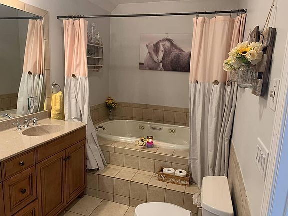 Luxury bathroom two-person Jacuzzi tub Electric fireplace for a cozy ambiance Fenced-in yard great for pets