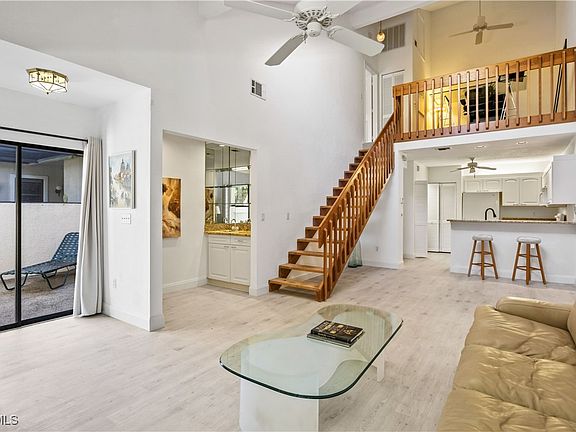 Discover the perfect blend of comfort, style, and convenience in this beautifully maintained 2-bedroom, 2-bath condo with a spacious loft, ideally situated in one of Naples most sought-after areas. This inviting residence offers a bright and open floor plan that seamlessly connects the kitchen, dining, and living spaces—perfect for relaxing, entertaining, or enjoying the Florida lifestyle year-round. The well-appointed kitchen features granite countertops, a breakfast bar, and plenty of storage, making meal prep and hosting effortless. The living area flows naturally to the private screened lanai, creating an inviting indoor-outdoor feel and providing the perfect spot to enjoy your morning coffee or unwind in the evenings. The first-floor bedroom offers convenience and privacy, complete with its own full bath and direct access to the lanai. Upstairs, you’ll find a spacious loft overlooking the living area, ideal for a home office, reading nook, or additional guest space. The primary suite is also located on the second level and features a private bathroom and access to a private deck, offering a peaceful retreat surrounded by tropical greenery. Emerald Woods is nestled among multimillion-dollar Naples communities, providing a quiet, beautifully landscaped setting perfect for walking, running, or biking. And with one of the best locations in town, you’re just steps—or minutes—from everything that makes Naples exceptional. Enjoy being across from Pelican Bay, only 1 mile to Vanderbilt Beach, and within walking distance to Mercato, where you’ll find premier dining, shopping, and entertainment. Artis–Naples and Waterside Shops are just 5 minutes away, and RSW Airport is an easy 30-minute drive. Whether you're looking for a full-time home, seasonal getaway, or investment opportunity, this turnkey condo offers outstanding value and a lifestyle that truly embodies the best of Naples living.