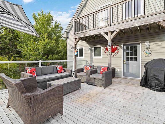 Privacy, Space & Elegance! Perched atop a serene, private hill and surrounded by over three acres of mature forest, this exceptional property offers the perfect blend of peaceful living and prime location. Just 25 minutes from downtown Halifax and steps from Granite Springs Golf Course, you will enjoy unmatched privacy without sacrificing convenience. Step inside to a bright, open-concept main floor ideal for both relaxed living and effortless entertaining. The kitchen boasts rich cabinetry, granite countertops, propane cooking, stainless steel appliances, a spacious island, and a peninsula with seating. The kitchen flows seamlessly into the expansive dining and living areas where you will find a cozy wood stove with a stone surround adding warmth and charm. Enjoy the outdoors from multiple vantage points: generous front and back decks invite gatherings or quiet moments in nature, while a sunroom off the main living area offers a tranquil retreat for morning coffee or reading. Upstairs, the private primary bedroom features soaring cathedral ceilings, a walk-in closet, and its own balcony with breathtaking sunrise views over the bay. A second large bedroom with its own balcony and a full bath with double sinks completes the upper level. The walk-out lower level is perfect for multi-generational living or guests, offering two additional bedrooms, a full bath, and a spacious family room with wet bar and double patio doors leading to the lower deck. An oversized detached two-car garage includes a fully finished, heated, and insulated loft with its own balcony. This space is ideal for a home office, studio, or guest suite. With modern amenities, abundant space, and unparalleled privacy, this move-in-ready hilltop retreat is a rare find. Be sure to explore the 3D tour and video to fully appreciate all this property has to offer. Schedule your private showing today!