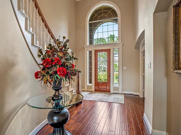 Welcome to gorgeous 75 Florham Park Dr. Nestled in the sought after Estates section on over an acre, surrounded by mature trees & landscaping. Wrought iron gate. 22KW generator, 2 story foyer, spiral staircase, study w/French doors, stunning hardwoods throughout. Plantation shutters, formal dining, soaring ceilings in living room w/wall of windows, custom built-ins, gas fireplace, spacious island kitchen, gas range, oversize sink, wine fridge, dual ovens. 3-car garage w/additional parking, porte-cochère, park-like setting w/spectacular trees, gorgeous Pebble Tech pool & spa w/water feature, outdoor grill & fridge, several sitting areas. Extremely spacious secondary bedrooms. Granite in all bathrooms, upstairs study w/French doors, gameroom, en-suite wi/separate staircase to garage. GLF amenities: 3 pools & splash pad, tennis courts, catch & release lakes, dog park, equestrian center, basketball pavilion, volleyball court, baseball/soccer fields, & 27 hole Gleannloch Pines golf course.