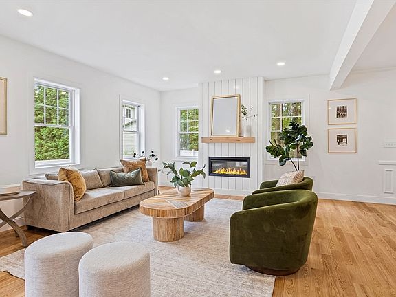 Experience modern living at 75 Franklin Street, Arlington two brand-new attached single-family homes nestled near the heart of Arlington Center. Spanning four levels, these homes are designed to impress with open, sun-filled layouts and luxury finishes throughout. The main level boasts a chef’s kitchen with quartz countertops, waterfall island, and walk-in pantry, flowing seamlessly into a dining area with wainscoting and a living room with fireplace, perfect for entertaining. A private office and half bath complete the space. Upstairs, find three spacious bedrooms with walk-in closets, including a stunning primary suite with spa-like bath. The third floor features a private guest suite with its own bath, while the finished lower level adds two versatile rooms, perfect for a gym, playroom, or media space and has it's own bath. Each home includes a private fenced yard, garage, and driveway, a rare new-construction opportunity so close to Arlington Center!