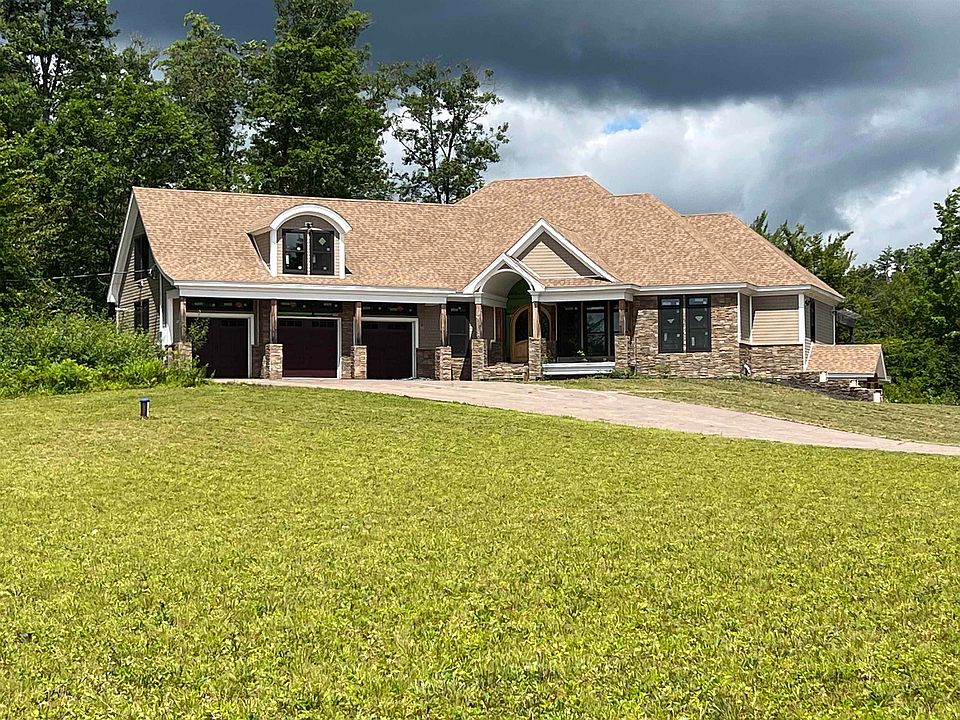 All the hard work has been done! Time to bring your finishing ideas to the interior of the sprawling estate spanning two lots. Drilled well, 5 Bedroom septic,all electric to the house,plumbing,insulation,sheetrock done. Even a place to stay while you finish the interior of the main living space. Some building material will convey. Enjoy the detached four car garage for all the overflow of toys. The entrance to the home has stone veneer pillars w/power run ready for gated entrance.