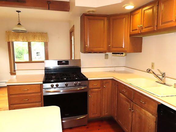 East Side Colonial located on a quiet Dead End street. Just a few minutes walk to enjoy Robin Hood Park, Patricia Russell Multi-Use Park & easy stroll to all downtown amenities. The KIT was renovated w/newer windows, natural woodwork, wide pine flooring, ceiling lighting & light fixtures. Plenty of hardwood cabinets, a pull-out pantry, lazy Susan & 4' storage island with storage below. Handsome gas stove, Bosch DW & plenty of work area. Sweet KIT dining area with a door out to the rear deck. Dining RM w/a pellet stove & recently added half bath. Open stairway accents the LR w/built-in bookcase & display shelving in one wall. Enclosed front porch enters into the LR. Second FLR w/large primary BDR with 2 closets. 2nd BDR is spacious with a large closet and 3rd BDR with one closet. Second FLR 3/4 bath w/very nice separate rear laundry room. Hard southern pine flooring throughout the home. Open access to 3rd floor attic store rooms w/ overhead florescent lighting. Handicap ramp onto covered side porch. East Side of Keene is near several schools, playgrounds, and many enjoyable walking trails.