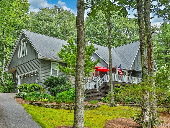 Nestled in a prime location with close proximity to the shopping, dining, and cultural events of both Highlands and Cashiers, this charming 3 bedroom, 3.5 bathroom home boasts excellent curb appeal and expansive outdoor spaces. Offering easy access to four prestigious country clubs, this home is perfect for those seeking both luxury and convenience. The main house features a vaulted living room with a stone fireplace, built-in lighted shelving, and elegant beam lighting that creates a warm and inviting atmosphere. A separate dining room with wainscoting, a good size den, and a spacious kitchen with a breakfast area add to the home's charm. Step outside from the living room to a screened porch leading to a large deck, perfect for enjoying the wood burning fire pit on cool mountain evenings. The tastefully landscaped, fenced backyard is the ideal size for easy maintenance and outdoor enjoyment. The generous primary suite, with a tray ceiling, offers direct access to the deck, a large bathroom, convenient laundry access, and a separate office space. The two guests rooms with an additional bath are located on the main level opposite side from the primary suite. Additionally, this home includes a fantastic bonus, an efficiency apartment above the attached two-car garage. This space features vaulted ceilings, two sleeping areas, a kitchenette, a den area, with a full bath. There is a private access through the garage—perfect for guests or as a rental opportunity. The beautifully landscaped yard is filled with mountain perennials, adding a vibrant touch to this lovely mountain retreat. Again the location of this home is ideal being directly across from Wildcat Cliffs Country Club.
