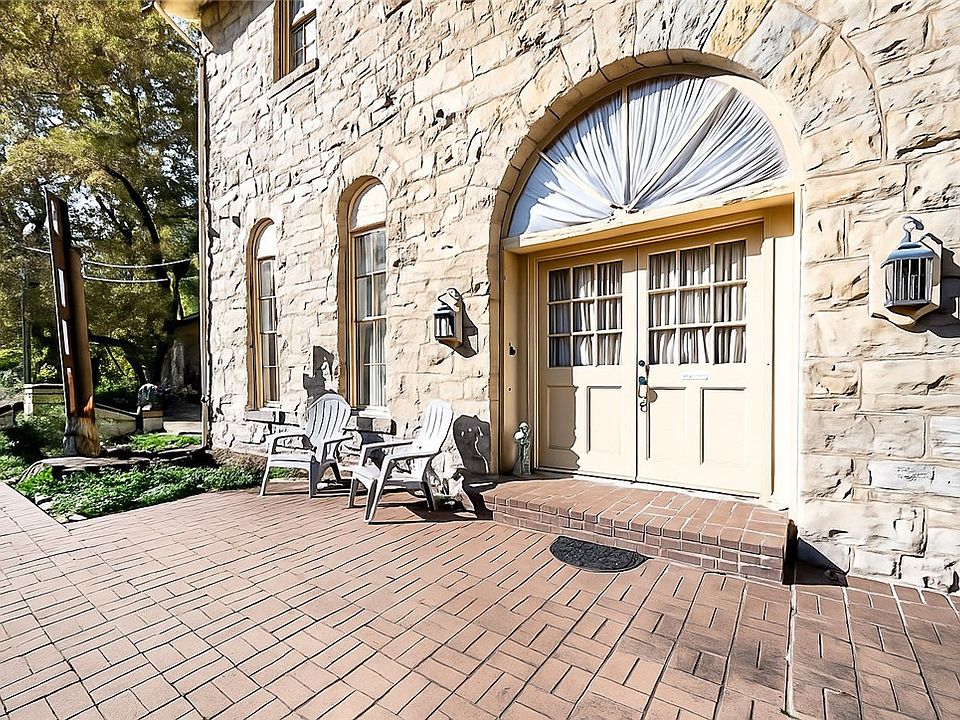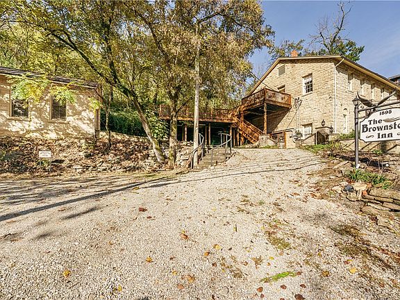 Historic lodging right across from the train station! This gorgeous limestone structure was built by the Ozarka Water Bottling Co in 1895 and is now the Brownstone Inn. Includes FIVE beautifully furnished, non-restricted short term rental suites, 6 parking spaces parking above and below, and a common dining/sitting area plus kitchen, all with independent central air. A detached limestone carriage house may be used as storage, a garage, or developed into more lodging or retail. A beautiful common-area deck overlooks the antique train cars. Plenty of utility and storage space. Financials available to qualified buyers. The rentals are professionally managed by a company willing to continue services for a seamless transition. State and Federal tax programs may offer up to a 45% tax credit on approved renovations.