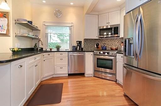 The right space, lovely detail & superlative location make this home a score. The owners have thoughtfully renovated to create spaces that remain true to authentic hallmarks of a c.1910 home while deploying updates of today. The kitchen, renovated in 2010, boasts granite counters, dining peninsula, glass tile backsplash, SSappliances, generous storage, family communication center and mudrm area. Sun-lit LR, DR & FamRm, great flow and space for gatherings, host period details: crown moldings, HWF, ceiling medallion, decorative FP & rectangular bay. 3 generous BRs & excellent closet space, master w/walk-in and full BA of granite double vanity, soaking tub w/skylight, and walk-in shower on 2nd flr. 3rd flr holds a BR & unheated office+storage. Lots of system & style updates: electrical, repointing, heat/central air & linen storage/laundry on 2nd flr. Relax and play on the private patio and greenspace. Close to schools,Whole Foods, dwntwn shops and restaurants, train, Fells & more!