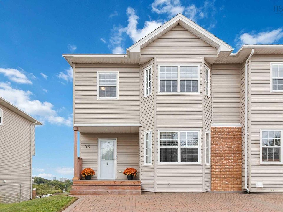 Visit REALTOR® website for additional information. Welcome to 75 Joffre- a well-maintained end unit townhouse with a spectacular view of the Halifax Harbour, in one of Dartmouth’s most desirable neighbourhoods. This three-level home features two spacious bedrooms upstairs, each with its own ensuite bathroom, including a large primary suite with a walk-in closet. The main floor offers an open-concept living, dining, and kitchen area with a convenient corner pantry and a heat pump for year-round comfort. A thoughtfully located half-bath completes the main level. The living area flows onto a sunny deck perfect for enjoying the harbour views, beautiful sunsets and firework displays. The fully finished walk-out basement includes a third bedroom, full bathroom, rec room, dedicated laundry room, and walk-out access to a fenced-in backyard with a brick patio. The kitchen features a natural gas stove, and there are natural gas outlets outside for easy BBQ hookup — no need to deal with propane tanks. Heating is provided by efficient natural gas radiant heat, including in-floor heating on all three levels. This home is in close proximity to the Alderney Landing Ferry terminal, Metro Transit routes, Lake Banook, Sullivan's Pond, Oathill Lake, nearby walking trails, Mic Mac Mall and grocery stores for convenient shopping. Additional highlights include a private double interlocking driveway. This is a rare opportunity to own an end unit, spacious, move-in-ready property with unbeatable harbour views and easy access to all that Dartmouth has to offer.