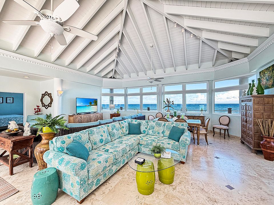 Judith's Fancy jewel! Gorgeous & well appointed 4 bedroom 4 bathroom waterfront home with garage in desirable gated community of Judith's Fancy! Immaculately maintained home with numerous windows takes full advantage of the sweeping sea views from every room. It's just steps away from the beach! Enter the private courtyard with pool which is sheltered from the breezy shore. The courtyard adjoins the wonderful great room, making a perfect space for gathering together & entertaining. The floor plan allows privacy for the bedrooms, each with ensuite bathrooms. The home has great attention to detail from the travertine tile floors to the vaulted ceilings. Generator powers entire house. If privacy & comfort are what you're looking for, this home is ideal! See improvements in Documents Section.