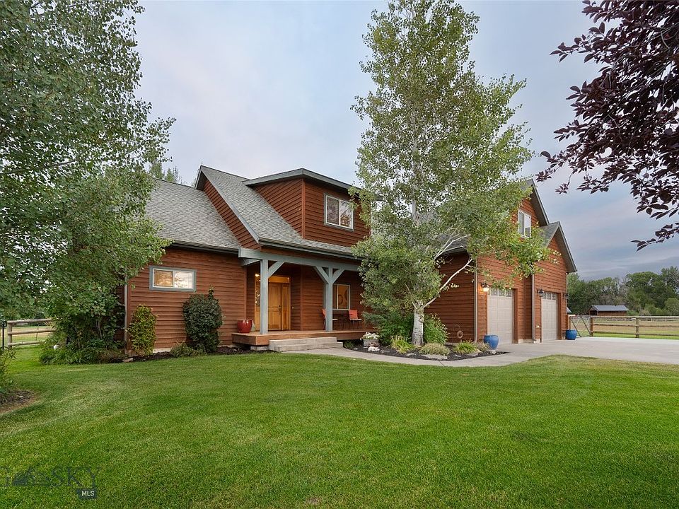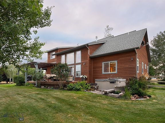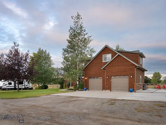 Situated on almost two acres this lovely home has a great feel inside and out. If you're looking for a little space and elbow room this home has it. Featuring high vaulted ceilings, tons of natural light throughout, gas fireplace, hardwood floors, main floor master bedroom, and multiple outdoor decks and patio for relaxing and entertaining. The upstairs features a very spacious family room, three bedrooms, and a bathroom. There's also room to build additional structures on the property. The backyard is almost completely fenced and features a dog kennel, stamped concrete patio, and large deck for BBQ and dining. This property is only minutes away from the Gallatin River.