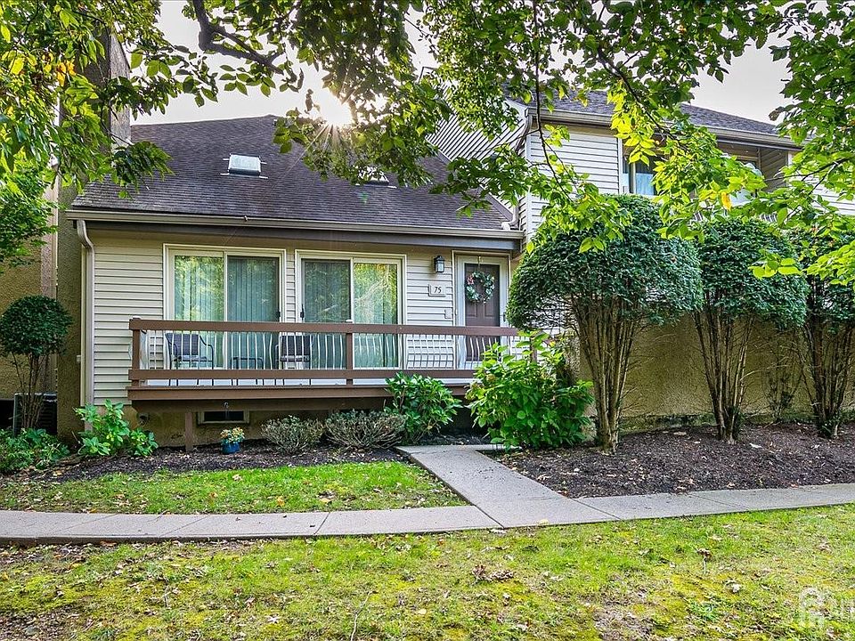 Beautiful Townhouse in the Prestigious Village Gate Community of highly desirable North Edison . As you arrive, you're greeted by a northeast-facing entryway that opens to a serene, private wooded lot, creating a peaceful and welcoming first impression. The spacious living room features dramatic cathedral ceilings, a cozy fireplace and skylights, ideal for both relaxing and entertaining. The updated eat-in kitchen boasts quartz countertops, stainless steel appliances, a pantry, and ample cabinet space. Enjoy formal gatherings in the separate dining room, and unwind in the primary bedroom suite complete with a full private bath and generous closet space. The open loft area overlooking the living room is perfect for a home office, guest room, or additional living space. Additional highlights include newer windows and doors, a basement, attached garage, and a prime location close to NYC train service, shopping, restaurants, and top-rated schools. Don't miss your chance to own a beautiful home in one of North Edison's most sought-after communities!More photos to come!