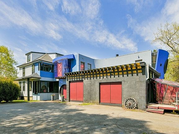 A one-of-a-kind property that fulfills next-gen’s work-from-home model, Blue Sky Farm was designed with an eye to the future. Merging live/work/play, the 1.47-acre parcel offers a 6,348 SF main house & 2 light-soaked accessory structures. Juxtaposing old & new, the farmhouse includes a futuristic wing with a circular entry & curved lines of floor-to-ceiling glass. A 2-story entryway features a nautilus-like closet; a capacious living room with hardwoods. Two barn doors open outwards, blurring the lines between indoor/outdoor entertaining. A primary suite sits on the 2nd floor, with custom-built-ins, a circular window with views of the verdant conservation land. Flanked by multiple decks, Blue Sky Farm affords 5 BD, 4F 1H BA with an expansive kitchen. The property comes equipped with 2 flex-use structures fit for our current epoch of tech startups and innovation hubs. Tucked away in Lexington’s greenery, this stunning listing offers the purest expression of the live/work model.