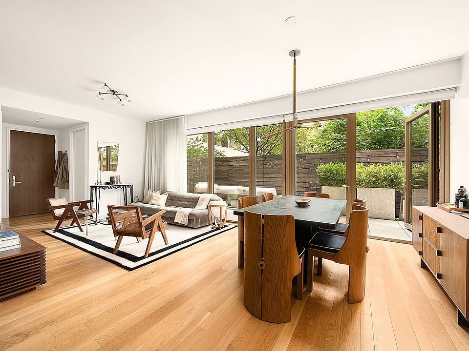 This striking one-bedroom, one-and-a-half-bathroom home with nearly 300 square feet of private outdoor space offers a rare blend of contemporary design and serene indoor-outdoor living.