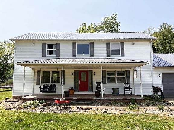 Peaceful Country Location with Amenities for Horse Lovers! This well-appointed two-story home rests on approx. 6.2 acres (+/-) and is perfect for anyone dreaming of owning horses or developing a mini-farm. If horses aren't your thing, no problem--the stables have 100-amp electrical service and could easily be converted to a pole-barn or workshop. Features include an owners' suite on the second level with its own balcony, a jetted tub, and his and hers walk-in closets. Two additional bedrooms and a shared full bath complete the upper level. Downstairs, walk into a gorgeous foyer with high ceiling and picture window, and explore further to find a living room large enough for everyone (w/gas log fireplace), dining room, large eat-in kitchen w/island, half-bath, and a laundry room near the attached two-car garage. Just in case this isn't enough space, find guest quarters with a full bath opposite the garage. Other features include a geothermal heating/cooling system, a new metal roof (approx. 1yr), and an above-ground pool surrounded by a recently installed deck.