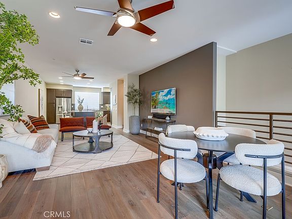 Enjoy two outdoor balconies that provide views of the park and the Irvine Financial District. The highly sought-after open floorplan includes a chef-inspired kitchen, complete with a large center island, quartz countertops, modern cabinetry and professional stainless steel appliances, making it perfect for culinary enthusiasts.