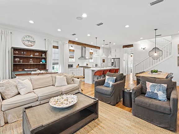 Located on Hwy 30A in Seacrest Beach, this beautifully appointed beach house backs onto natural protected woodland, providing exceptional privacy and serenity. Out front you'll find ample parking and an inviting full-width open porch. Wood flooring, crisp, clean decor, and shiplap detail are evident throughout this attractive home, built to the highest specification with quality furnishings. As you move inside the open concept home, there's a family-sized dining table for mealtimes and card games. The kitchen island has four bar stools, allowing guests to chat with the cook in the well-equipped open kitchen. White cabinets, stainless steel appliances, and Quartz countertops enhance this thoughtful space, which also incorporates a neat coffee bar in the corner. The sitting room is exceptionally light and bright, with an oversized space for gathering. It has multiple windows, recessed spotlights and French doors opening onto a screened porch with outdoor living and a built-in natural gas grill. This serene and private porch looks out onto natural Florida greenery with the chance to spot birds and wildlife. The first level also hosts a guest bedroom and a bath that can be accessed directly from the hall or the bedroom. The generously sized laundry room goes beyond the requisite washer and dryer, including an icemaker and a second refrigerator with a freezer. Head up the oak-tread stairs to the second floor, where the landing has a useful office nook with built-ins. It could easily be furnished as a bunk area for extra guests. A super-spacious guest suite boasts a walk-in closet and a private bathroom with a twin marble vanity and a walk-in shower. The bedroom also has access to a private balcony beneath the overhanging eaves. To the rear of the property, the master suite offers space and privacy with a marble vanity, garden tub and separate walk-in shower in the private bathroom. It has access to another screened balcony, this time overlooking the mature forest. A sliding barn door hides bedroom three, and there's a family bathroom with contemporary tile and a tub/shower combo. There's direct access to the nature trail for those who want to work up an appetite before breakfast. Located at the east end of 30A, this home is within easy reach of the 12,000-sq.-ft. resort pool and deeded beach access is available by bike or via the complimentary tram service. Boutique shopping, dining, and entertainment are plentiful locally and in nearby Rosemary Beach, ensuring every day is filled with activity.
