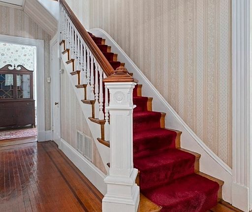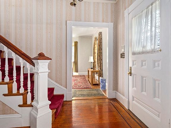 Welcome to this well maintained traditional colonial with a farmers porch and period detail throughout. Upon entering you will be graced by a gorgeous staircase banister & newel post, detailed woodworking & molding, original hardwood flooring, large spacious rooms throughout, and best of all the original ice box just off the kitchen. The 1st floor offers 9+ ft ceilings, formal dining & living rooms, eat-in kitchen with pantry, office, and 1/2 bath. The 2nd floor offers 8.5 ft ceilings, 3 sizable bedrooms, all with hardwood flooring and ample closets, and a full bath. This home offers plenty of room for everyone with room for expansion in the walk-up unfinished attic. Enjoy warm summer nights in the 3 season sunroom with opening sliding glass doors that overlook the patio and yard filled with beautiful perennial gardens. Updates include gas heat, Central Air, Generac generator, roof, and sunroom all approximately 10 yrs old. Plenty of off street parking and a one car garage is a bonus.