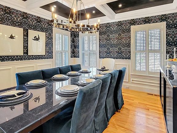 - Features: Coffered Ceiling(s), Flooring - Hardwood, Chair Rail, Paints & Finishes - Low VOC, Recessed Lighting, Lighting - Pendant