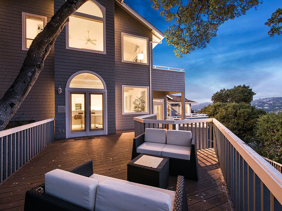 Built in 1988 by the current owners and meticulously maintained, this traditional-style home is situated among mature oak trees, overlooking the Belvedere Lagoon and across Belvedere Cove to Angel Island. The house has a flexible floor plan, with spacious casual areas for everyday living, and generous formal rooms for entertaining. The large lot size and location above the street gives the house a comfortable feeling of privacy. Every room in the home has access to either a deck or patio space, or leads out to the home's exterior.
