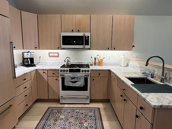 Honed dolomite countertopsUndercabinet lightingHigh-end appliancesMultiple large closetsNew sink and faucetGourmet kitchenWater views