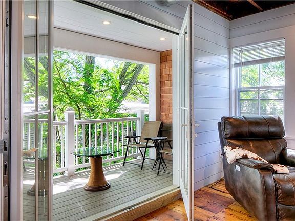 The "Mrs. Eno Hazard" house, circa 1850, is a stunning Victorian in the heart of the Historic Hill neighborhood. It is a single family home that has been transformed into a dramatic contemporary space. The renovation preserved the original wide pine flooring while creating a spacious, modern 5-6 bedroom, 3.5-bathroom residence on 3 levels of living space. The first floor features the primary bedroom suite with an en-suite bath and French doors leading to a brick patio. There are two other bedrooms with a hall bathroom, laundry and wet bar on this level. The side door accesses the outside shower. The floor plan is Nantucket Style - great room with an open living, dining and kitchen with island and Lavette on the second floor. On this level, the French doors open to a recessed deck overlooking the brick patio. On the third floor, you'll find three additional bedrooms and a hall bathroom - complete with a classic clawfoot tub and separate shower. Central air conditioning, nicely appointed bathrooms, open floor plan complete the picture. Walk to all the Newport amenities or grab the trolley up the street by the Viking Hotel. Though no off street parking, the surrounding streets are residential sticker parking. There is even a public shuttle service from the Viking Hotel (2 short blocks away) that services Bellevue Avenue. This home masterfully blends historic character with contemporary comforts, making it a standout property in an exceptional location.
