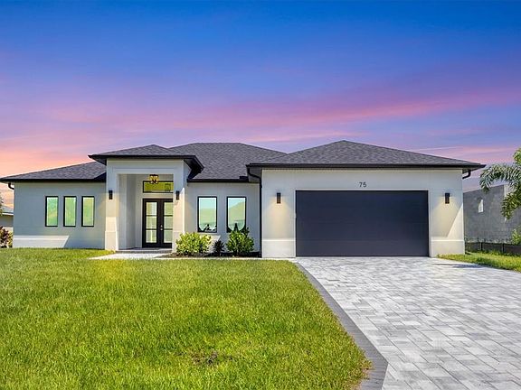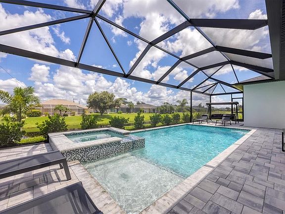 Immaculate Custom BRAND NEW BUILT WATERFRONT Home with Breathtaking Canal Views .Prime Location! POOL AND SPA! PUBLIC WATER AND PUBLIC SEWER! NO HOA OR CDD! ELEVATION FFE +11.47 FT. NOT FLOOD ZONE! Step into luxury with this meticulously maintained, custom-built residence, perfectly positioned on one professionally landscaped lots with captivating views of a freshwater canal. Designed with an emphasis on open space, natural light, and elegant detail, this home offers the ultimate Florida lifestyle. Open-Concept Layout with soaring volume 10 FT ceilings and both single and double coffered accents CUSTOM KITCHEN QUARTZITE COUNTERTOPS HIGH END APPLIANCES(kitchen aid) PLUMBED FOR OUTDOOR KITCHEN AND SHOWER PANORAMIC VIEW POOL SCREEN CAGE HEATED POOL/SPA OUTSIDE BATHROOM Zero-Corner 8-Foot Sliding Glass Doors that seamlessly integrate indoor and outdoor living spaces 42” Soft-Close Wood Cabinetry,QUARTZITE countertops, breakfast bar, and UPGRADED KITCHEN AID stainless steel appliances in the upscale chef’s kitchen Casual Dining Nook with tranquil canal views. Diagonal Ceramic Tile Flooring throughout main living areas for a seamless feel Luxurious Master Suite featuring:Two spacious walk-in closets plus an additional storage closet. Direct access to the lanai via sliding glass doors. Spa-like en-suite bathroom with walk-around tile shower, dual QUARTZITE vanities, and private closet Guest Accommodations Two generously sized guest bedrooms with ceiling fans and large closets Second full bathroom with walk-in shower, perfectly situated to serve both guests and the pool area Outdoor Oasis Expansive 57' x 20' screened paver pool deck with a sparkling pool and tranquil fountain feature Oversized covered lanai, ideal for year-round entertaining Lush landscaping with concrete edging and canal-fed irrigation system (canal water saving on your water bill) Additional Highlights 2-Car Garage with durable epoxy-coated flooring Brick paver driveway and walkways enhance the home’s stunning curb appeal Impact-resistant windows and doors for security and peace of mind Substantial windstorm insurance credits thanks to impact protection Centrally located near top-rated golf courses, fine dining, boutique shopping, and world-class marinas with direct access to the Intracoastal Waterway and the Gulf of Mexico. Just a short drive to pristine beaches, nature preserves, and some of the best fishing in the state.Experience the best of Florida with nearby beaches, golf courses, and outdoor recreational activities just a short drive away. Don't miss out on the chance to own this extraordinary home.