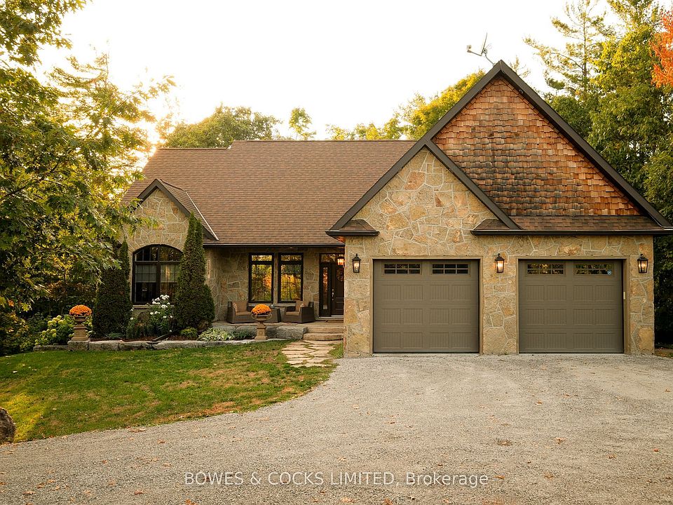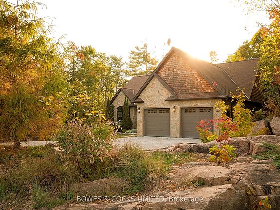 Welcome to your dream country retreat in Buckhorn! Located in Granite Ridge Estates, this stunning 3-bedroom, 2-bathroom bungalow sits on 1.16 acres of wooded land and boasts 2600 square feet of livable space. An oversized double garage is directly accessed from the laundry room. Open concept living, dining and kitchen with herringbone hardwood floors are the perfect setting for family gatherings and entertaining. The kitchen features a raised breakfast bar that seats six comfortably as well as an oversized pantry and stainless-steel appliances. The living room has a walkout onto a large, raised wooden deck. The master bedroom features a 5-piece ensuite: a corner tub, stand alone shower with beautiful natural stone, double granite vanity and his and hers walk-in closets. The large family room on the lower level includes a propane fireplace to keep you warm on cold winter nights while still feeling like you're part of the outdoors. A full walkout leads to a beautifully landscaped, terraced yard and adds a touch of elegance to the property creating a picturesque setting for outdoor gatherings. Both levels have ample windows throughout providing an abundance of natural light. This home offers the perfect blend of luxury and tranquility. Buckhorn is ideally situated 25 minutes from Peterborough. The Town offers a Foodland Grocery Store, LCBO, convenience store, library, community centre, public school and marina. Year-round activities such as skiing, sledding, hiking, canoeing, kayaking, fishing, sandy beaches and more are all at your front door. Don't miss your chance to own this exquisite piece of paradise in Buckhorn.