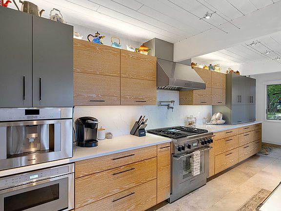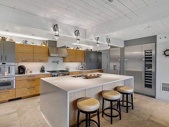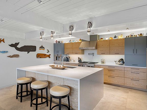Experience refined living in this pristine 3 bedroom, 3.5 bath Coastal Contemporary home offering 3,613 sf of modern elegance on 1.93 serene acres. Updated with a new roof in 2023, the open-concept layout features soaring tongue-and-groove style plank ceilings and expansive windows that flood the space with natural light. The custom kitchen includes Glenn Baller & Co. wooden cabinetry, Thermador stainless appliances, and a large island with built-in sink and dishwasher. The family room centers around a built-in gas fireplace framed by a lovely, marbled blue-gray textured surround and opens to a private patio. The sunlit formal dining room with vaulted ceilings opens to a large stone patio that extends into the beautifully landscaped backyard, while the adjacent living room, complete with a dry bar and electric fireplace, offers direct access to the outdoor patio as well. The main floor features a private primary suite with walk-in closet and full bath, complemented by a separate half bath for guests. On the upper level, a second primary suite includes dual walk-in closets and a full bath, along with an additional en-suite bedroom, a private office a with wood-burning fireplace, and dedicated laundry room. Enjoy remote blinds, Bryant 2-zone HVAC, central vacuum, and a Kohler generator. Two 2-car garages with storage lofts provide ample parking. Exceptional location close to the finest restaurants, golfing spots, local shops, beaches, local attractions and major employers.