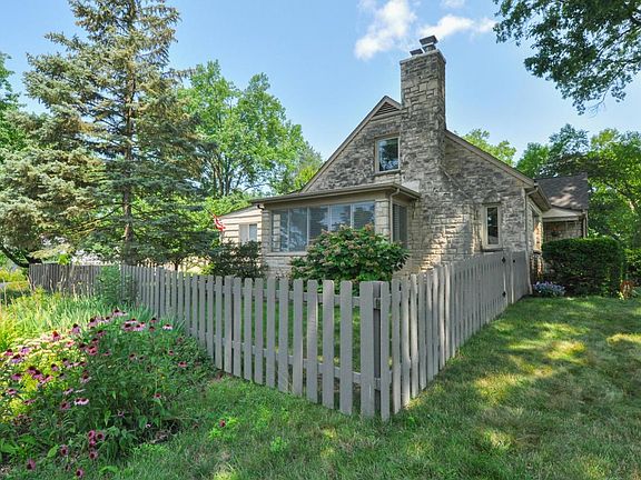 Spacious and charming stone cape cod on a gorgeous fenced lot. Enjoy quiet evenings on the quaint brick patio or relax on the covered sun porch overlooking the well manicured lawn and landscaping. Oak and hickory floors. 1950's charm throughout. Updated paint colors. The home is surrounded with mature trees and green space. Don't miss out on this beautiful rare find!