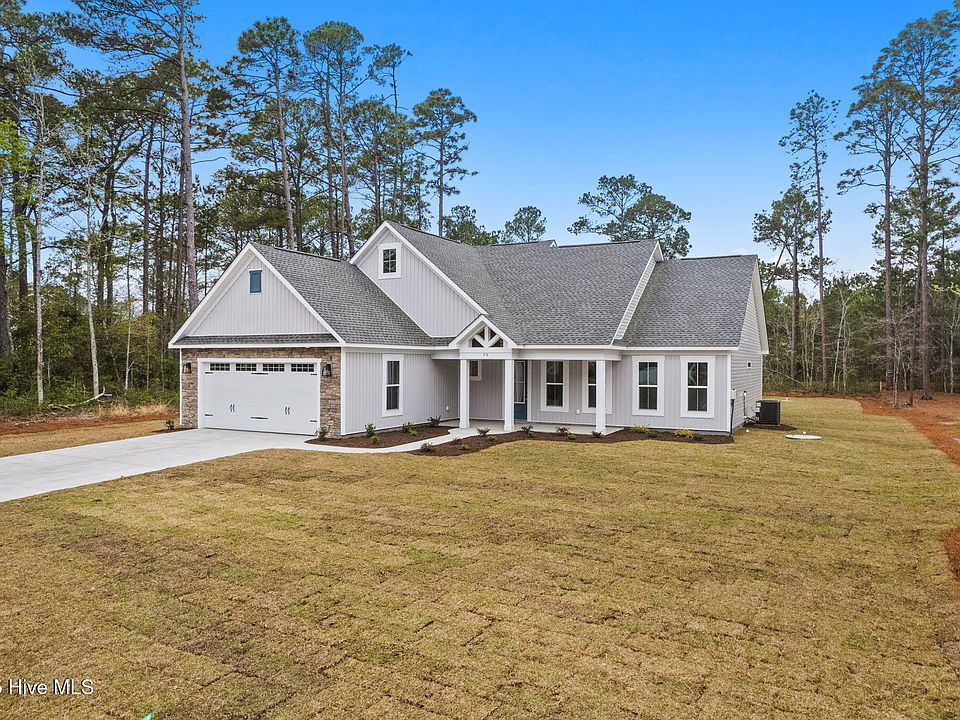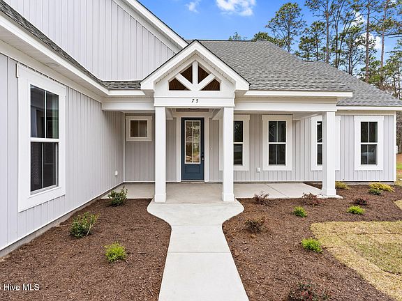 Exquisite new 3 bedroom, 2 bath custom designed home located in Carolina Shores North. Upon entering the home you are welcomed by the grand foyer which features a shiplap ceiling with contrasting paint color, coat closet, bench and custom trim. There is an office/flex room off of the foyer/living area. The kitchen offers quartz countertops, stainless appliances, a slide in convection oven with air fryer mode, stainless farm sink, white herringbone subway tile backsplash and a huge pantry with custom wood shelving. The dining area off the kitchen is beautifully finished with high wainscotting and heavy crown molding. Nice covered porch off the dining area that overlooks the fully sodded backyard. The living area comes with an electric fireplace with shiplap and custom built-in shelving. The master bedroom has heavy crown molding with trey ceiling and a large walk-in closet with custom wood shelving that leads to the laundry for easy access. The master bath comes with dual vanities, quartz countertops, and custom tile shower. The laundry room is fitted with custom built-ins and cabinets. The oversized garage offers more storage options and comes with an 8' X 18' insulated garage door. Huge floored attic area above the garage. Close to area shopping, restaurants, and medical facilities.