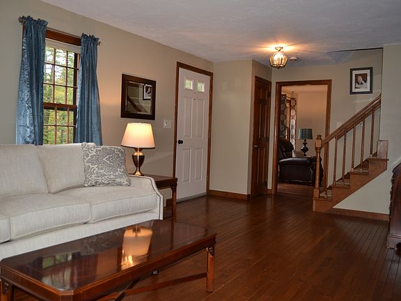 Move right into this lovingly updated 3 bedroom- with an extra room for potential 4th bedroom or office upstairs- Colonial situated on a beautiful 1/2 acre wooded lot. Newer kitchen with granite counters, cabinets, and tile backsplash. Gleaming hardwood floors throughout 1st floor, master bedroom and upstairs hall. Spacious family room with fireplace and sliders leading to expansive screened-in porch overlooking private backyard. Both full baths remodeled in 2016. Half bath remodeled in 2014. Brand new roof in 2017. 2 car garage and storage shed. Only 205 miles to commuter train to Boston. Everything you need and nothing to do but move right in and enjoy!