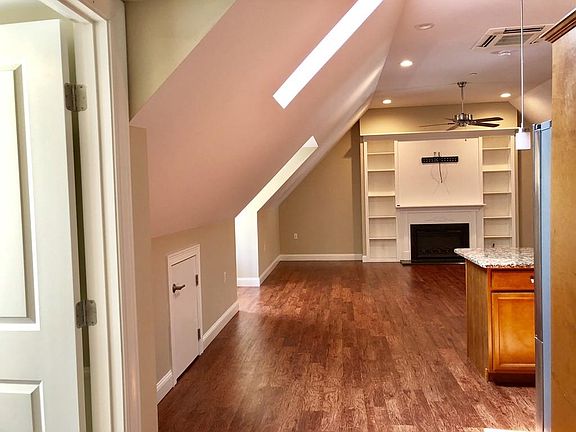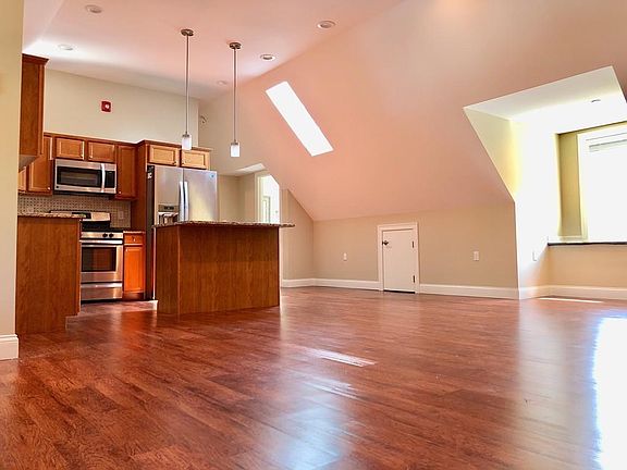 **AVAILABLE NOW** Spacious top floor 1000+Sq.ft 1 bedroom 1.5 bath apartment. This unit is a MUST SEE it features 10' feet + high ceilings, modern kitchen with stainless steel appliances, granite counter-tops with Island & an open large living area with custom built in book shelves and electric fireplace. Additional features include an over sized master bedroom with two large closets cathedral ceiling with skylights and a nook that can be used as a home office space. Extra storage available in basement and off street parking included. NO SMOKERS. Pets OK 1 dog under 15lbs or 1 cat.