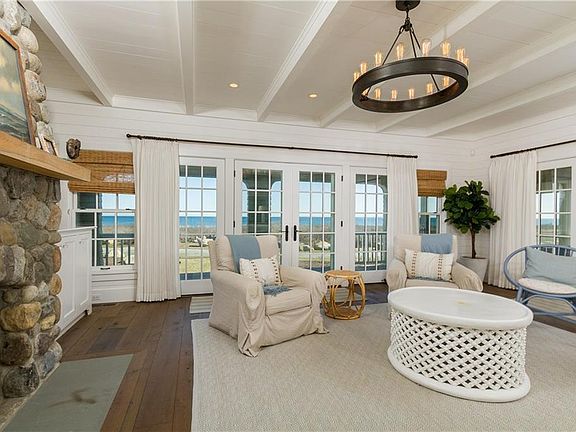 ENTERED FOR STATISTICAL PURPOSES ONLY SOLD BEFORE PRINT CENTRAL BEACH QUONOCHONTAUG. This stunning custom home in the seaside coastal community of beloved Quonnie spans nearly an acre from Ocean View Avenue to Surfside Avenue to the Atlantic Ocean. Imagine your very own PRIVATE BEACHFRONT LOT. The interior of this home is simply magnificent with custom white ship lap throughout and features four en-suite sleeping quarters. The open floor plan presents a gourmet kitchen, with a fabulous butler's pantry, along with a spectacular family room and stone fireplace overlooking the water. This level includes a den and yet another family/play room. Adding to the perfection is a lovely screened in porch. The upper level offers three en-suite bedrooms, two of which have balconies overlooking the beauty of the ocean. There is a gorgeous guest suite with a full bath at the far end of the home over the two car garage. This pristine home has exquisite appointments and is truly one of a kind. The deeded beachfront lot across the street is amazing and is a perfect way to enjoy life in Quonnie. The community provides private tennis courts, basketball, a ball field and a playground. To add to the perfection is parking and access into Quonnie Pond for boating kayaking, fishing or clamming. The community of Central Beach awaits you with this special home.
