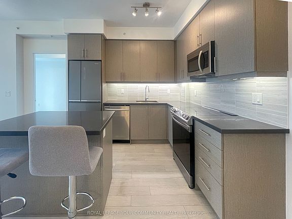 Welcome to this beautifully maintained 2-bedroom, 2-bathroom condo in the heart of Richmond Hills vibrant Yonge & Hwy 7 corridor: Langstaff. This sun-filled west-facing suite features a functional split-bedroom layout, 9 ft smooth ceilings, and is completely carpet-free with laminate flooring throughout (tiled in wet areas). Freshly painted and move-in ready! The modern open-concept living and dining space is anchored by an L-shaped kitchen with a centre island & breakfast bar -perfect for casual meals or entertaining. Water & heating are included, so you only pay hydro. Comes with 1 parking space and 1 locker. Building Amenities: 24-hour concierge, gym, yoga room, sauna, elegant party room, dog wash station, and ample visitor parking. Location: Steps to shops, restaurants, theatres, schools, VIVA & GO Transit. Quick access to Hwy 407 & 404, plus nearby parks and trails for outdoor enjoyment.