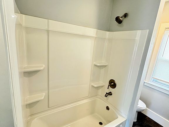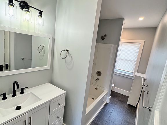 Renovated Bathroom: Modern fixtures, fresh flooring, a new tub, and new vanity provide a clean, updated feel.