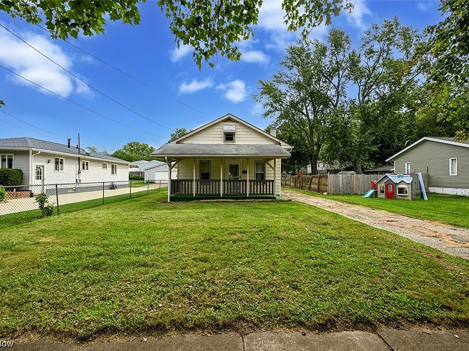 Looking for love! This 2 bedroom 1 bath ranch home welcomes you home with an oversized porch that invites you to a large family room with an abundance of windows for tons of natural light. The living room opens seamlessly to the charming kitchen with adorable tile backsplash and newer oak cabinets. Just beyond the kitchen is a huge laundry room and an access door to a back porch that overlooks a private backyard and oversized garage make outdoor entertaining pleasurable. The bathroom is updated with new tile floors and oak cabinetry. In an area of well maintained homes, don’t miss the opportunity to make this rare find yours!
