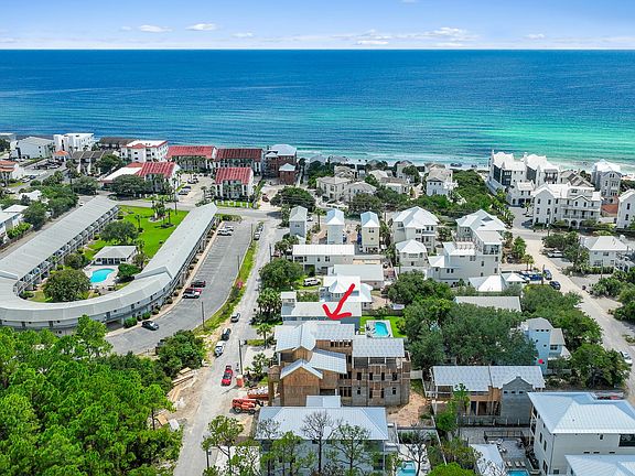 Welcome to Villa Dolce, a 3,074 sq ft luxury retreat in Seagrove, steps from Pelayo Public Beach Access. This custom-built 5-bed, 5.5-bath seamlessly blends modern elegance with coastal living. The 1st flr features an open-concept layout, including a chef's kitchen w/ top-of-the-line appl, quartz & granite c-tops, & gas range, spacious primary suite w/ walk-in closet, garden tub. The outdoor oasis offers a covered back porch & entertaining area, heated pool, spa, outdoor TV, firepit, grill, dining area, & outdoor shower, surrounded by lush landscaping & sprinkler irrigation system. Upstairs, 4 guest beds w/ensuite baths & 2nd living area provides space for family & guests. A large laundry room w/sink, 4x8 storage unit, hurricane-impact doors & windows. Close to restaurants & shopping