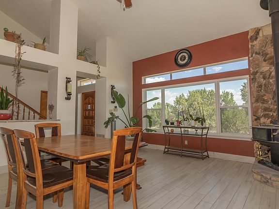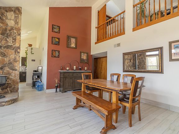 Beautiful home on 5 acres in the heart of Edgewood! 3 bedroom, 2 bath with 2 seperate living areas. The master suite upstairs has a large loft area with tons of natural light! This home boast many recent upgrades like tile floors downstairs, an updated bathroom, kitchen, appliances, and paint! This property is set up for horses, goats, chickens, whatever you've got! The home sits on top of a hill and has great privacy, yet still manages to have terrific views of South Mountain to enjoy! Community water, 2 car garage, workshop/office/hobby room out back. Fenced backyard for your pets. There are many wonderful places outside to sit and relax and enjoy the beautiful East Mountain weather!