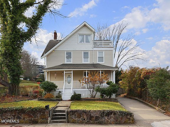 3-levels with unobstructed panoramic views of the NYC skyline, stretching from Sandy Hook to Sea Bright and encompassing the Lower New York Bay and Atlantic Ocean. Nestled between Hartshorne Park and the Twin Lights, this home stands proudly among multi-million dollar properties. The exterior offers a charming rocking chair front porch and a serene rear yard. Inside, the main level features an open living and dining room, a cozy fireplace, a country kitchen, and a half bath. On the 2nd level, you'll find three spacious bedrooms complemented by a luxurious bath. The top-level suite serves as a private retreat, featuring a full bath and an expansive patio, which takes full advantage of this prime location.
