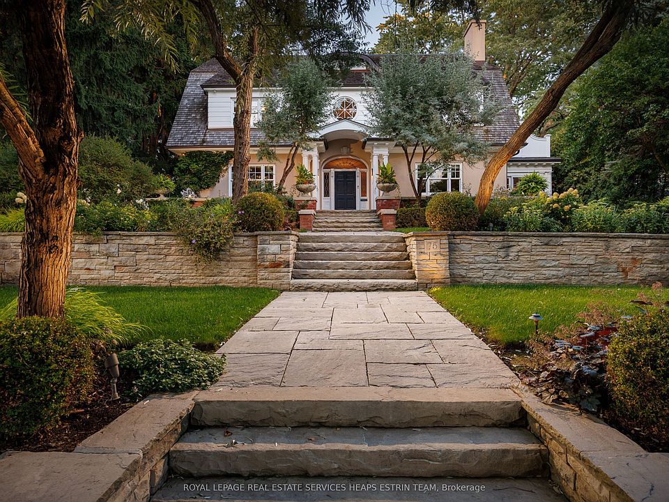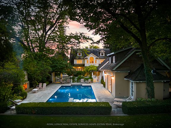 A landmark estate in St. George's Park. Privately set on one of Guelph's most prestigious streets, 75 Queen Street is a legacy residence of rare scale and architectural significance. This fully reimagined Dutch Colonial estate sits elevated on an 89 x 264-foot lot, surrounded by professionally designed grounds that have been meticulously cultivated and maintained for over 25 years. The exterior offers resort-quality living, with a saltwater pool, wood-burning fireplace, outdoor shower, and dedicated pool bathroom, framed by mature trees and layered stonework. The sense of privacy and serenity is immediate. Inside, the home spans over 5,700 square feet of finished space and follows a classic centre-hall plan with gracious flow and custom detail throughout. The main level includes a grand great room, formal dining room, glass-enclosed sunroom, chef's kitchen with granite surfaces and premium appliances, and a private office. Upstairs, the primary suite features two fireplaces, a walk-in closet, a five-piece ensuite, and a private balcony with hot tub. The third floor offers additional bedrooms, a large family room with wet bar, and elevated views of the gardens and city skyline. The fully finished lower level includes radiant heated floors, a home theatre, cigar lounge with ventilation, wine cellar, kitchenette, and full laundry. A detached garage and separate outbuilding provide parking for four vehicles, a sauna, a full bath, and two upper lofts that are ideal for guest accommodation, a studio, or a wellness retreat. In total, there is parking for 14 vehicles. All buildings are security-monitored and equipped with heat sensors, ensuring peace of mind and enhanced safety throughout the estate. Just steps to St. George's Park and within walking distance to downtown, the GO Station, and top schools, this property presents a rare opportunity to own one of Guelph's most iconic estates. Timeless, private, and built without compromise.