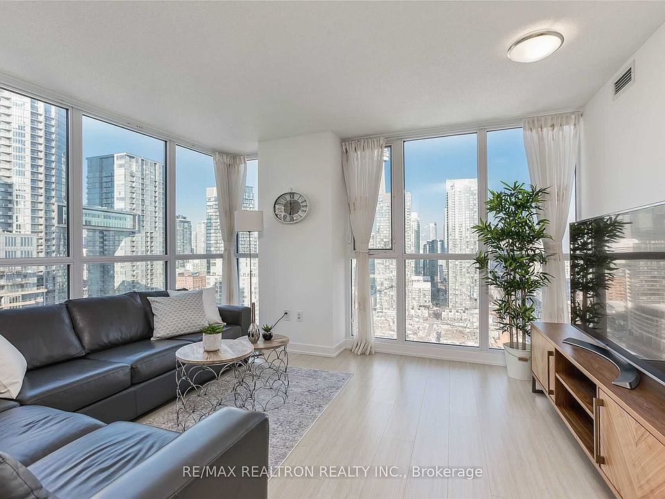 *Partially Furnished*Downtown Luxury with Panoramic Views! Welcome to this exceptional 2-bedroom, 2-bathroom corner unit offering 1,008 sq. ft. of stylish living plus a 130 sq. ft. balcony. Perched high above the city, this unit features unobstructed views of Lake Ontario and lush parkland, creating the perfect balance of natural beauty and vibrant city living. Inside, the bright open-concept layout is flooded with natural light through expansive windows. The spacious primary suite overlooks the lake, with large second bedroom. Both bathrooms are elegantly finished, complementing the sleek modern design throughout.The kitchen is equipped with modern cabinetry, quartz countertops, and updated LED under-cabinet lighting, ideal for both everyday living and entertaining. Step onto the oversized balcony, your private outdoor escape with breathtaking park views.Building amenities include: 24-hour concierge and security, a state-of-the-art fitness centre, indoor pool, residents lounge, and more.All this in a prime downtown locationjust steps to transit, shopping, dining, the waterfront, and the new LRT. This is truly downtown Toronto living at its finest.